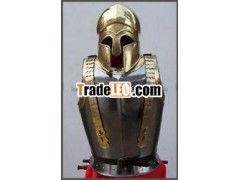 Medieval breast plate with medieval helmet.These firece looing helmets are accompained by the half boodyarmours.